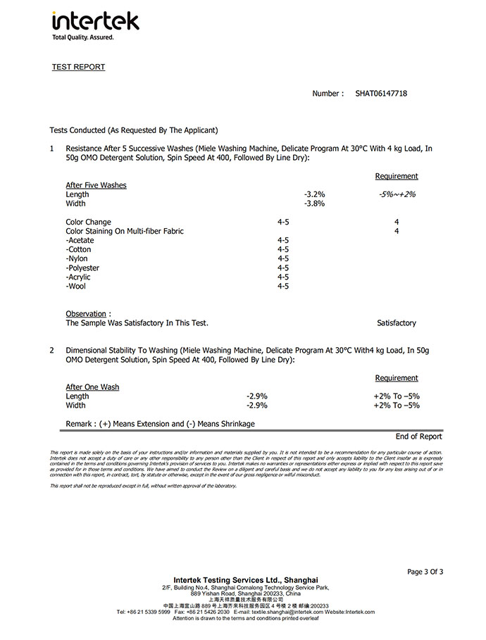 | Certification | OEKO-TEX STANDARD 100、 Intertek Eco-Certification |